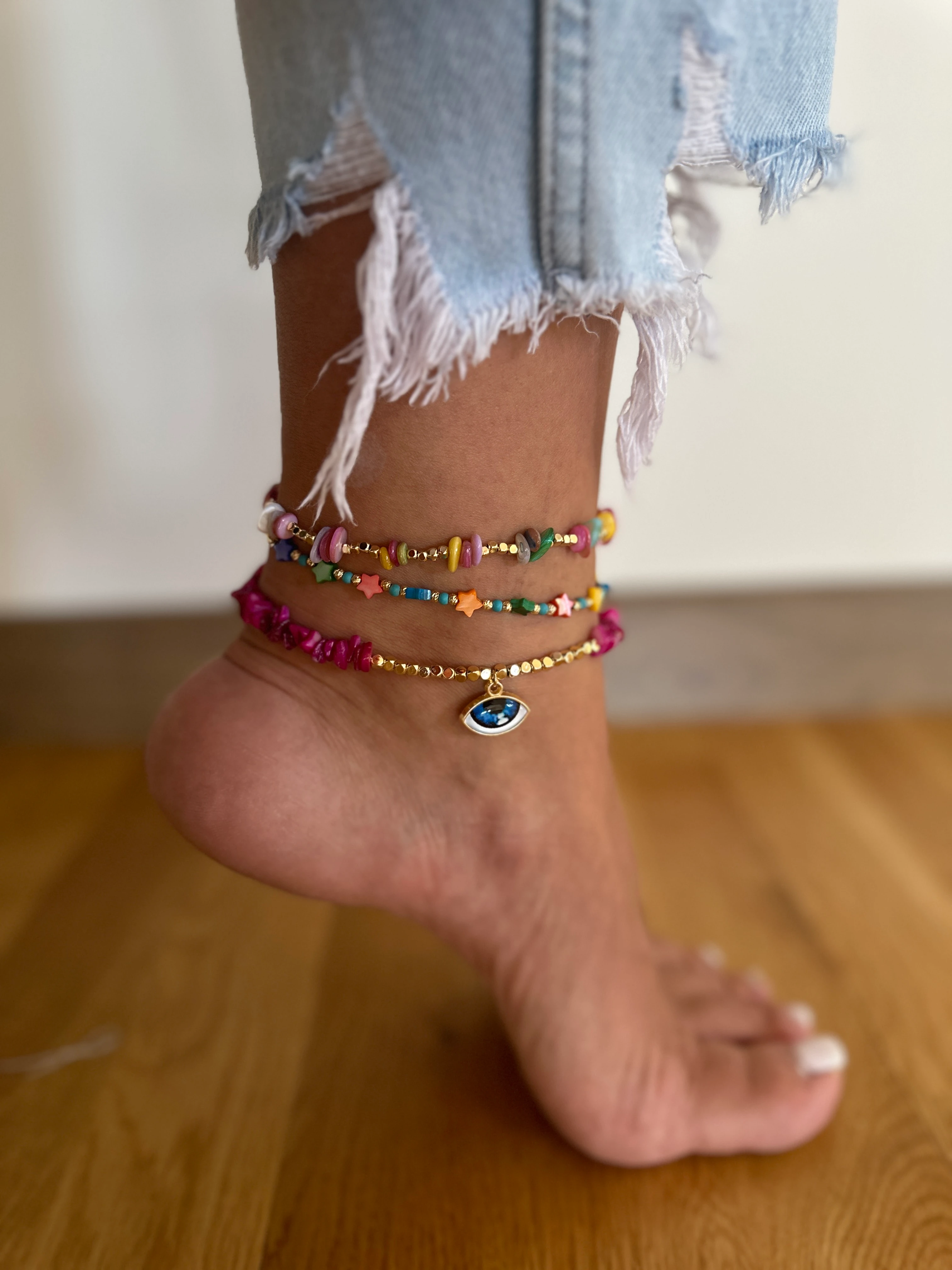 illys Gold Sallantılı Göz Figürlü Fuşya Çakıl Taşı Detaylı Halhal