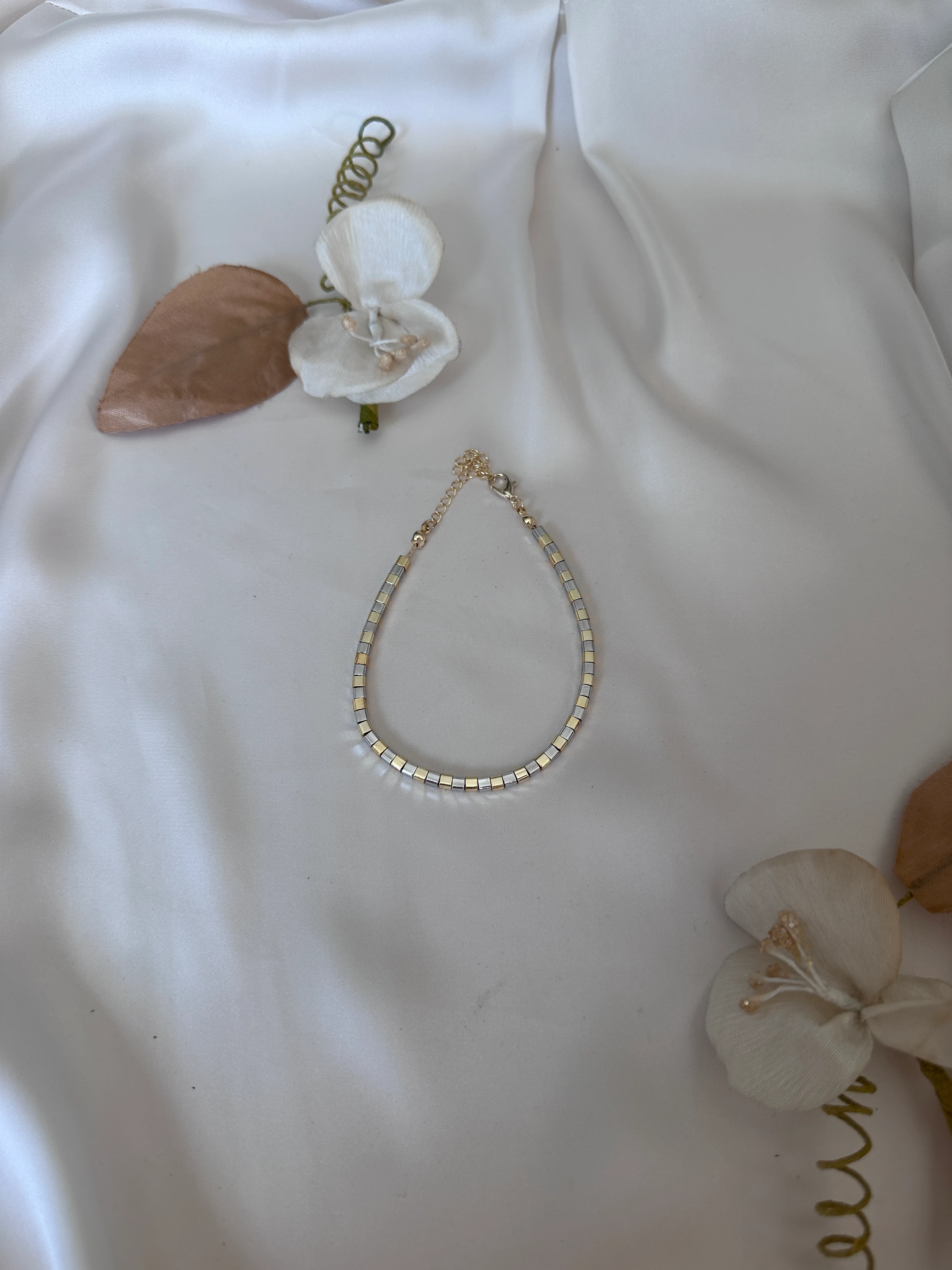 illys Gold Silver Dikdörtgen Plaka Çift Renk Halhal